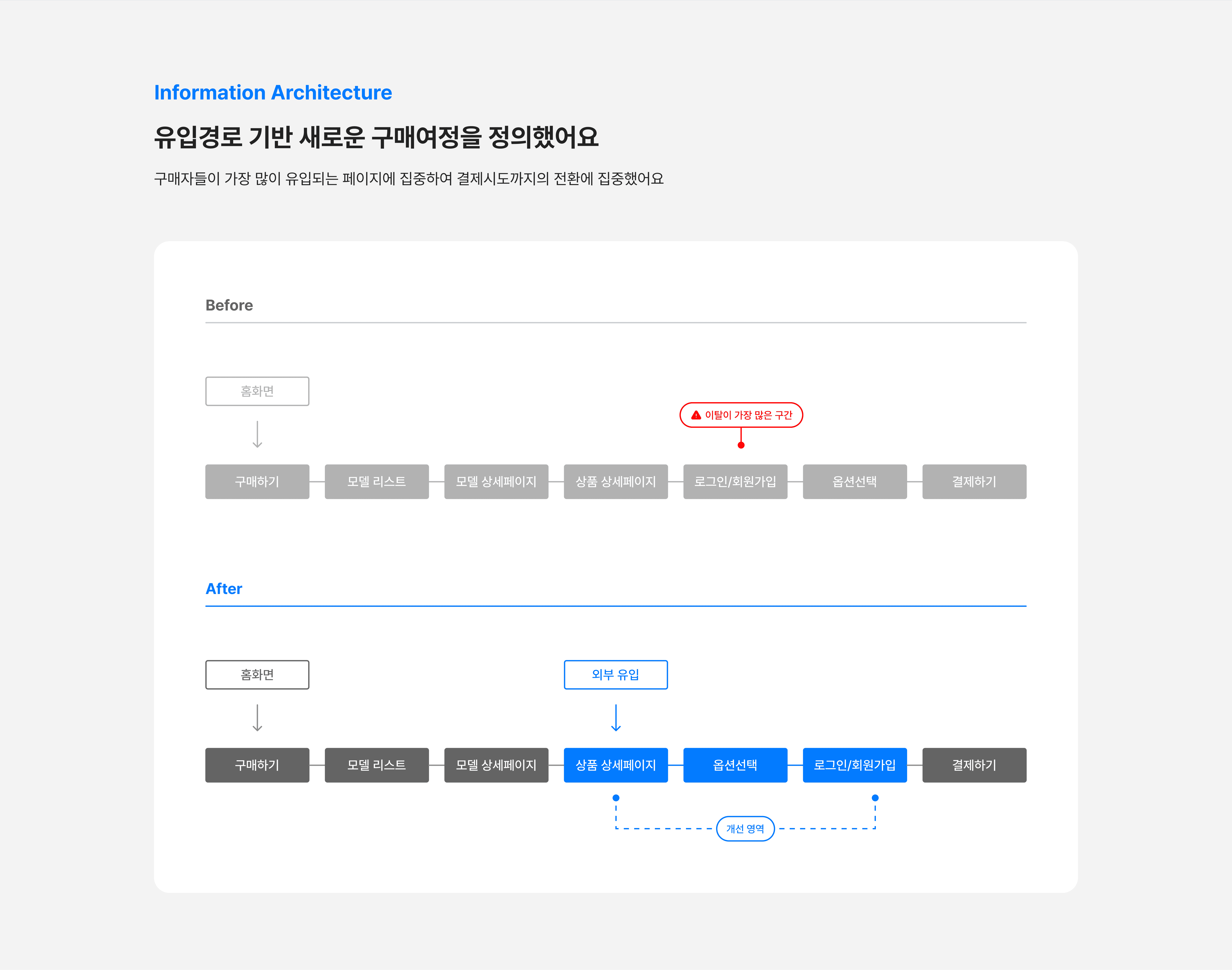 5개 주요 구간의 UX 구조 및 플로우 개선 리딩