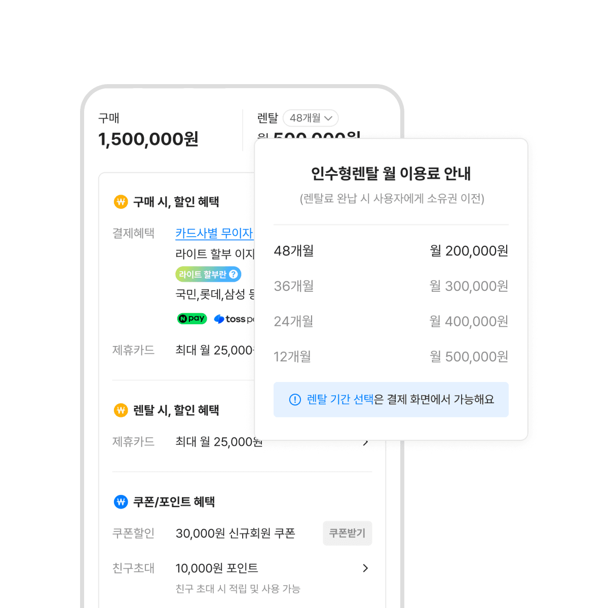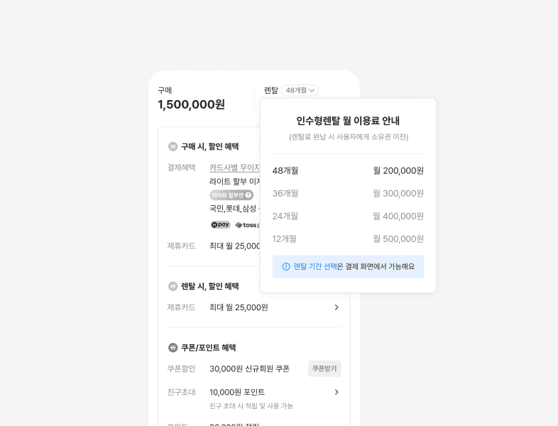 The overloaded popup modal was replaced with a tab-based interface that separated payment methods clearly. Users could now switch between purchase, rental, and installment options with a single tap, and see the price update instantly per term length. No ambiguity, no hidden information.
